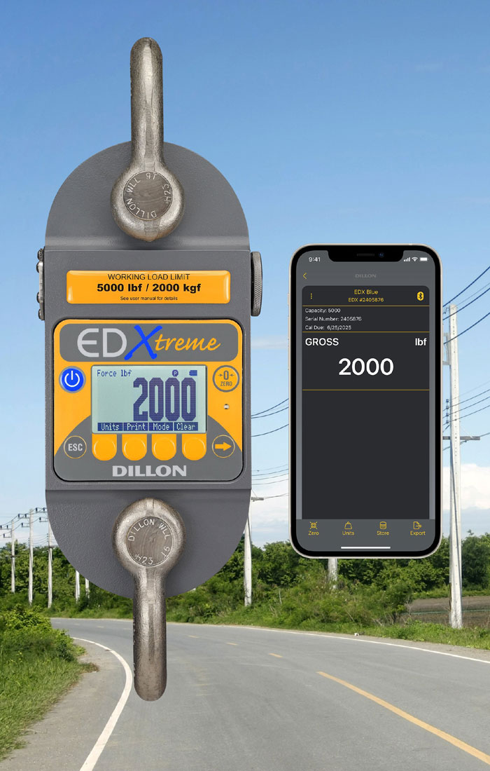 OverviewThe EDXtreme Blue is the latest Dillon dynamometer offering, allowing for wireless use through a Bluetooth® connection with an Android or iOS device. Utilization of the Dillon EDX free mobile app allows for remote monitoring, data logging and exporting, and remote configuration of the EDXtreme Blue dynamometer