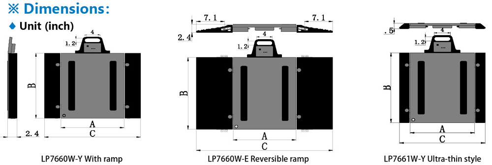 | Models | LP7660W-Y-1416-10 | LP7660W-Y-1624-20 | LP7660W-Y-1624-20 | LP7660W-E-1416-10 | LP7660W-E-1624-20 | LP7660W-E-2432-30- | LP7661W-Y-1416-5 |