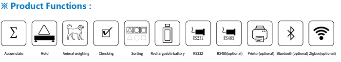 | Weighing function | Hold, Animal weighing, Checking, Sorting | |||