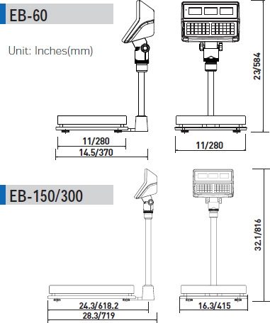 - Overall Size (EB-60): 13.8 (W) x 18.5 (D) x 23 (H) / (EB-150/300): 16.3 (W) x 28.3 (D) x 32.1 (H)