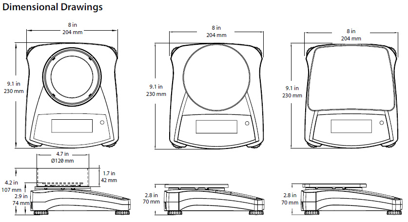 | Balance Dimensions (W x D x H) | 8 x 9.1 x 4.2 in with draft shield 8 x 9.1 x 2.9 in without draft shield |