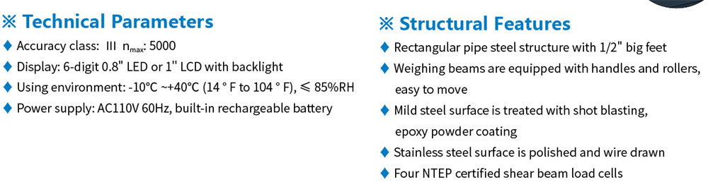 The LP7630 Beam scales are pordable with wheels bringing accurate weighing solutions. Type A Includes 2 U-Beams with wheel, 4 Load cells, Weighing indicor,Cable. Type 2 Includes 2 Rectangular tube beams, 4 Load cells, Weighing indicor,Cable