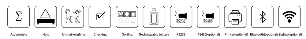 | Weighing function | Zero, tare, G.W, N.W, accumulation. printing, animal -weighing. | ||||||