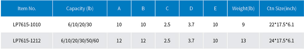 | Mild Steel Model | LP7615-1010-6 | LP7615-1010-10 | LP7615-1010-30 | LP7615-1212-6 | LP7615-1212-10 | LP7615-1212-30 | LP7615-1212-60 |